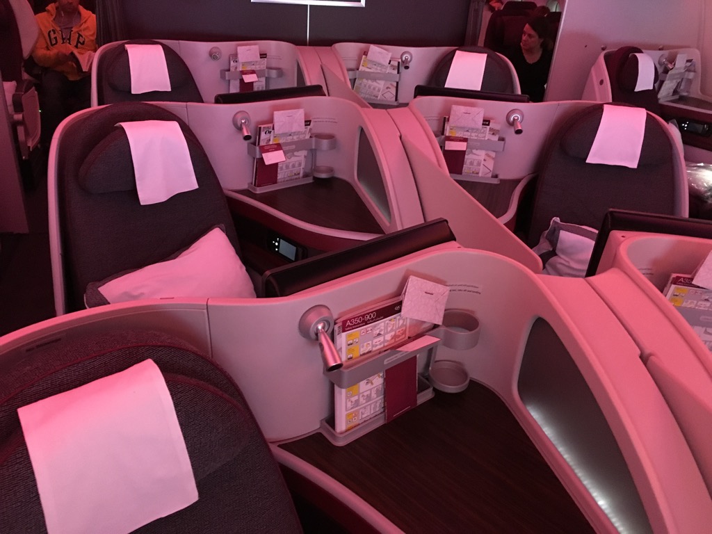 Qatar Airways Business Class Airbus A350-900 „Red Eye“ | Kabine und Sitz