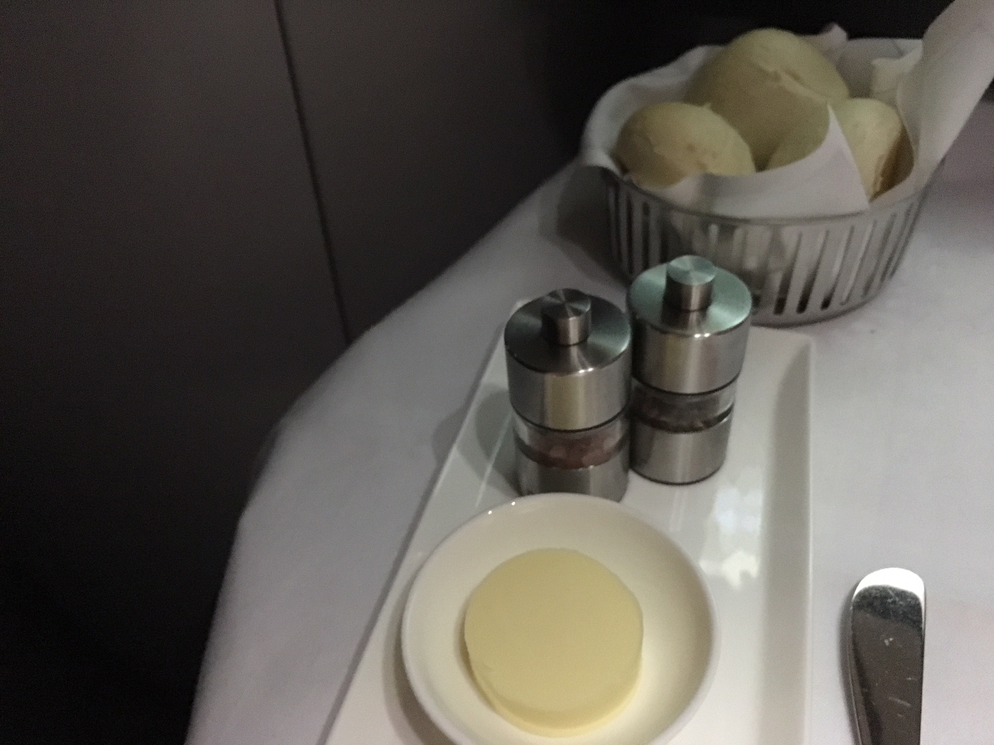 Mir gefällt das Setup des Tisches extrem gut und besonders die kleinen Salz- und Pfeffermühlen, welche die selben wie in der Lufthansa First Class sind.
