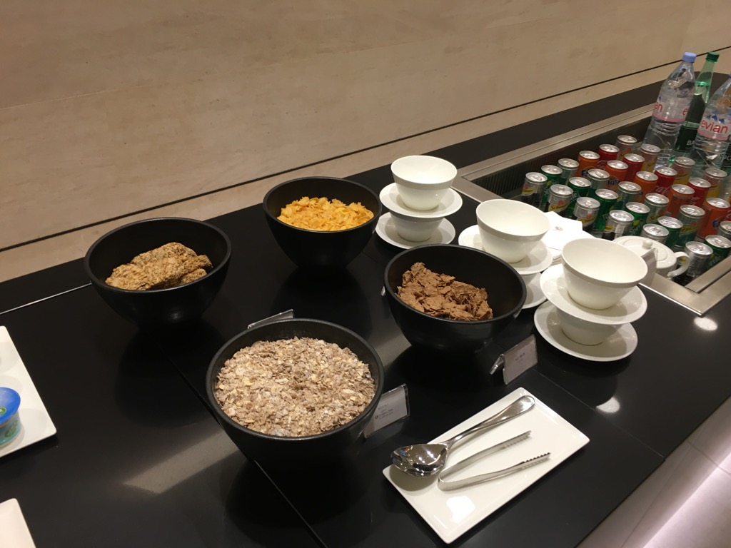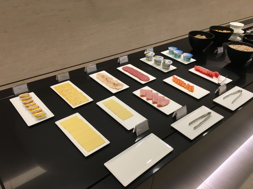 Neben der doch überschaubaren Auswahl am Buffet, kann man sich auch einige Speisen frisch zubereiten lassen und von einer Karte bestellen. Bei den wenigen Gästen in der Lounge sicher eine sehr gute Idee. Ich selbst habe hierauf allerdings verzichtet, da ich im Anschluss im Hotel mit Nicole frühstücken wollte.