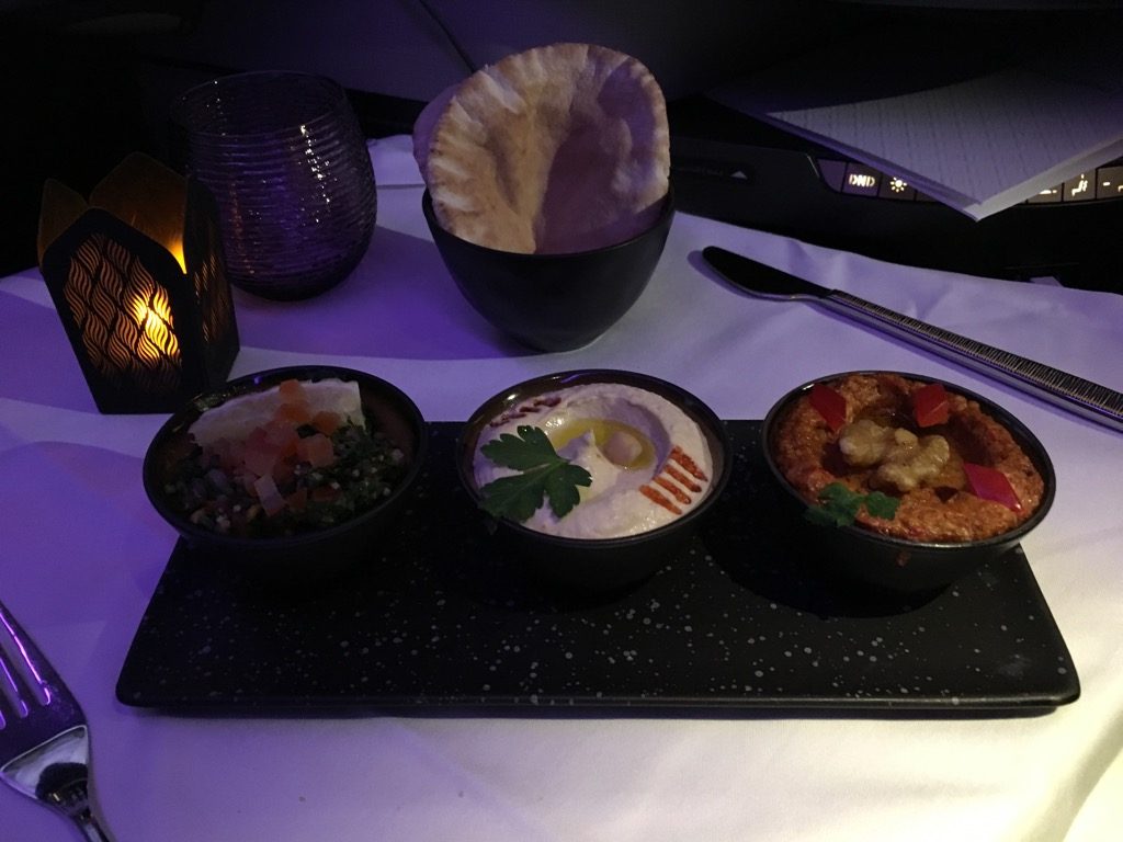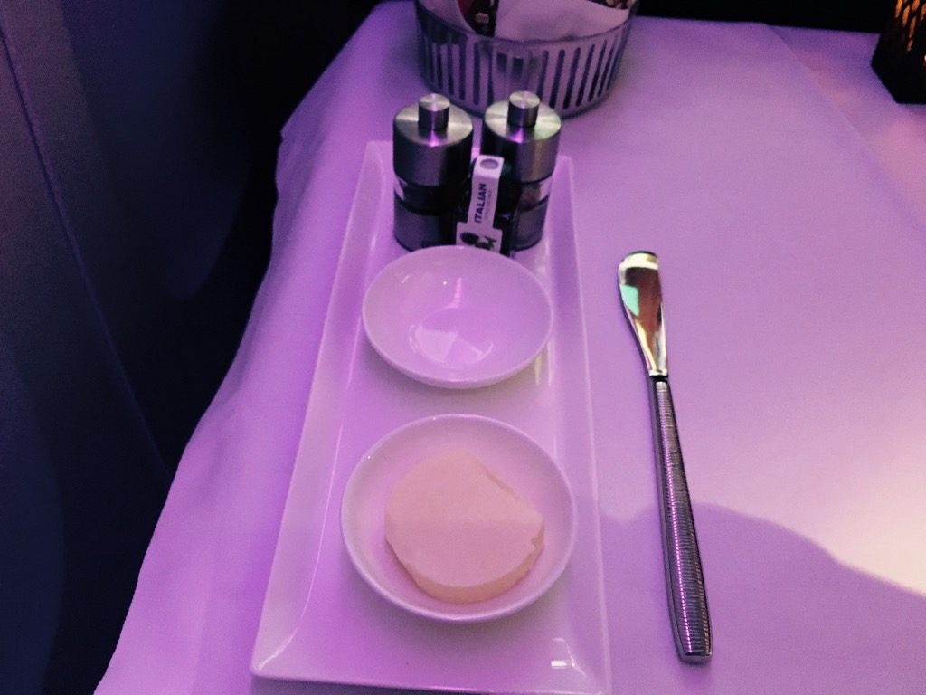 Ich habe mich dazu entschlossen, direkt nach dem Start zu essen. Nicole wollte erst ein wenig schlafen und Ihr Essen etwa zwei Stunden nach dem Start haben. Dass dieses Konzept zwar eine tolle Idee ist, aber es in der Business Class vielleicht nicht die beste Option ist, will ich weiter unten noch einmal kurz erläutern.