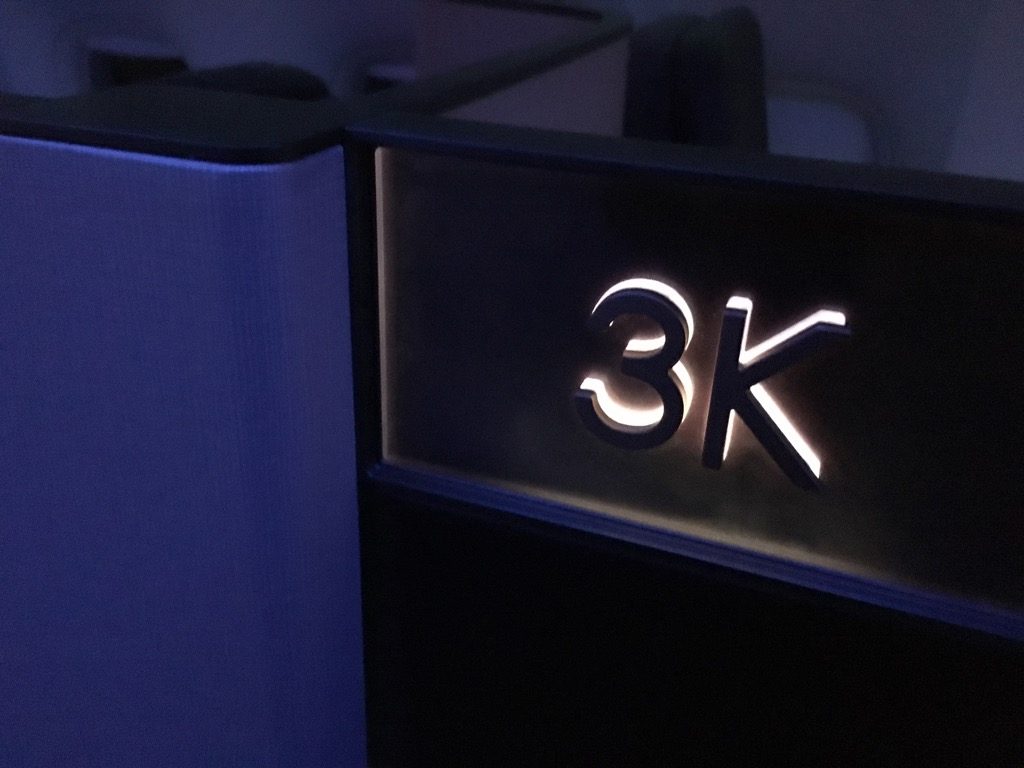 Die Qatar Airways QSuite Business Class Sitze verteilen sich über zwei Kabinen in der Boeing 777-300er. In der vorderen Kabine befinden sich 22 QSuites und in der zweiten Kabine noch einmal 18 QSuites. Uns wurden beim Check In-je eine QSuites am Fenster in 3 und 4 gegeben. Nicht ganz ideal wie sich an Bord herausstellte, denn die sich zugewandten Suiten am Fenster können nicht durch das Verschieben des Fernsehers verbunden werden, wie es bei den Suiten in der Mitte der Fall ist.