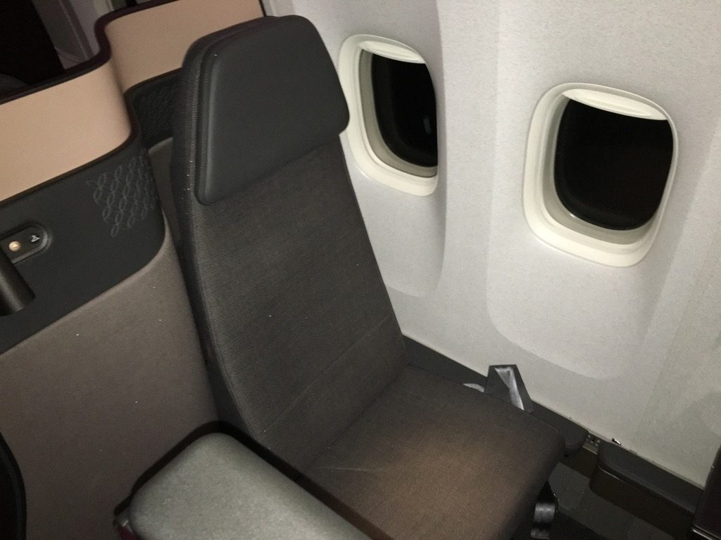 Die Sitze in der Mitte, in Richtung der Flugrichtung, sind deutlich weiter von einander entfernt und daher auch für Alleinreisende geeignet. Allerdings ist die Trennwand zwischen den Sitzen nicht so hoch, wie die Türen zum Gang. Daher kann man hier durchaus seinen Nachbarn sehen, wenn man sich ein wenig streckt.
