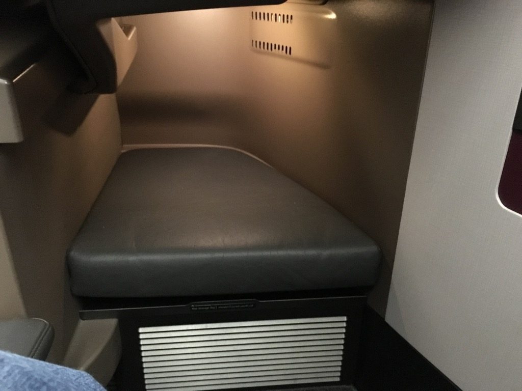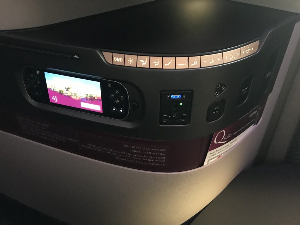 Ein kleines Detail zur Qatar Airways QSuite, ist der „Do not disturb“ Knopf. Das Licht der Sitznummer wird in diesem Fall rot und die Crew wird den Passagier nicht wecken oder stören.