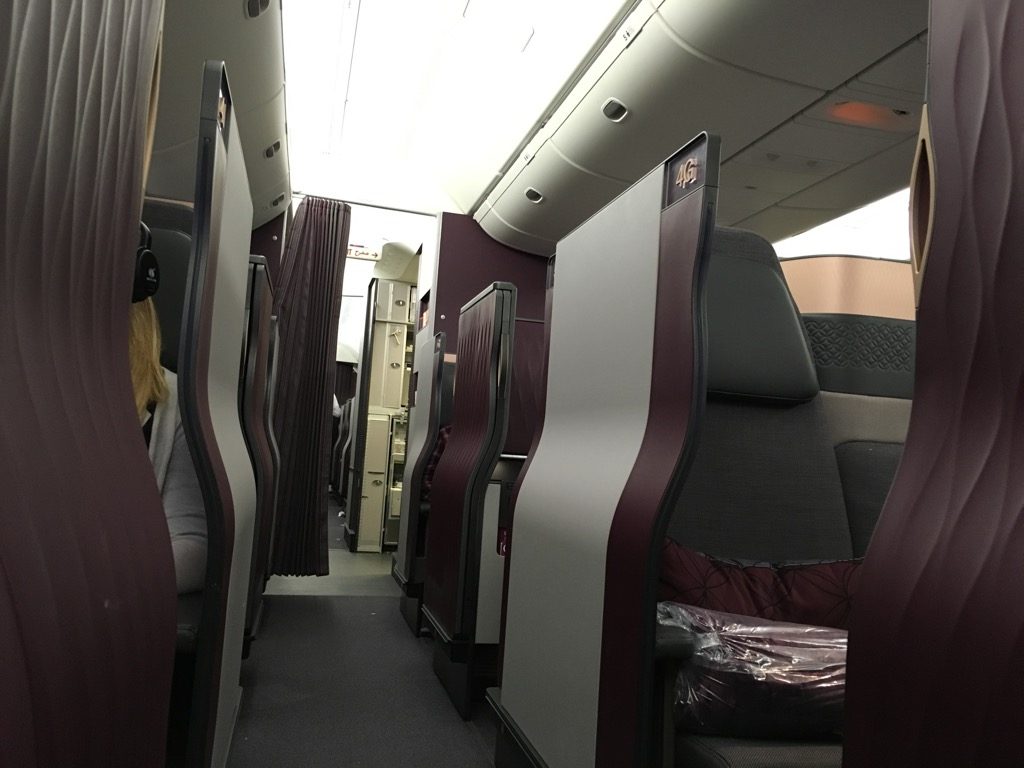 Am Gate gab es eine eigene Schlange für die Business Class, oder in diesem Fall QSuite Gäste, sodass wir ohne jegliche Wartezeit nach Kontrolle der Pässe und Bordkarten einsteigen konnten. An der Tür des Flugzeuges wurden wir von einer Flugbegleiterin begrüßt, welche uns direkt zu unseren Plätzen führte.