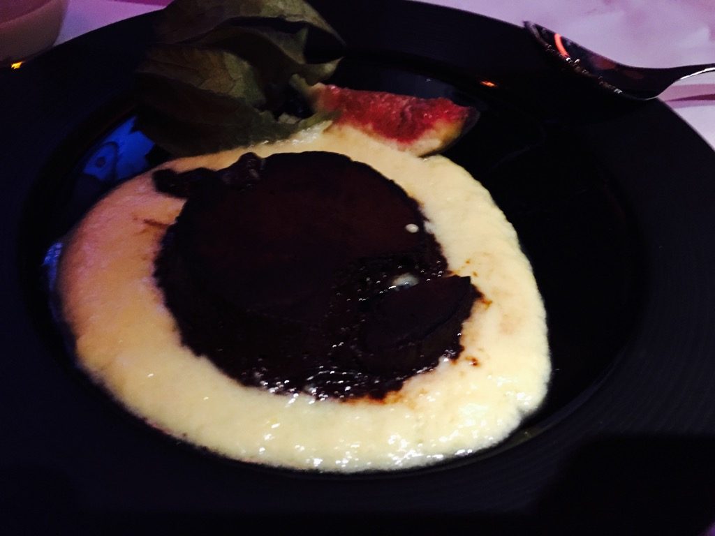 Als Dessert hatten sowohl ich, als auch Nicole beide den Lava Cake auf Vanillesoße. Während mein Kuchen angenehm warm war aber, leider nicht ausgelaufen ist, war Nicoles Lava Cake leider noch eiskalt und in der Mitte sogar gefroren.