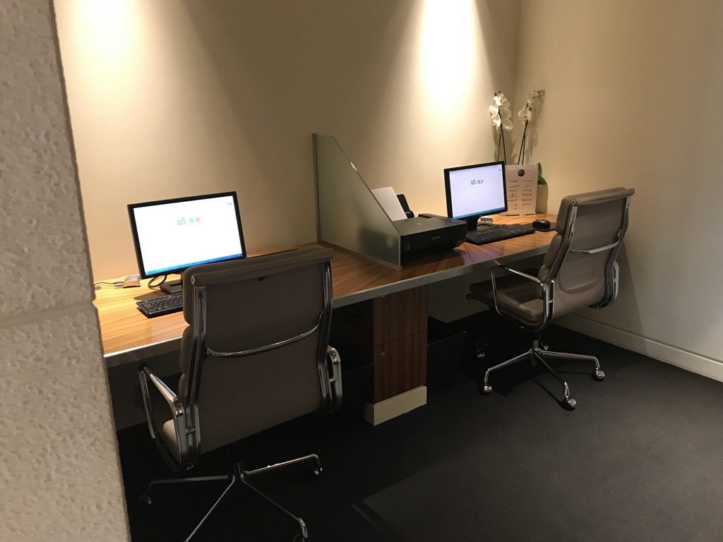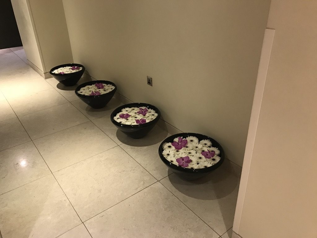 Wir wurden direkt am Eingang der Lounge empfangen. Einen richtigen Empfangs-Desk gab es nicht. Unsere Bordkarten wurden gescannt und uns wurde das Handgepäck abgenommen und eingeschlossen. Das fand ich super und ich vermisse es in vielen Lounges, wie zum Beispiel dem Lufthansa First Class Terminal in Frankfurt. Christoph erzählte mir gerade, dass es sowas im First Class Terminal sehr wohl gibt, dass es aber nicht proaktiv angeboten wird. Schade…