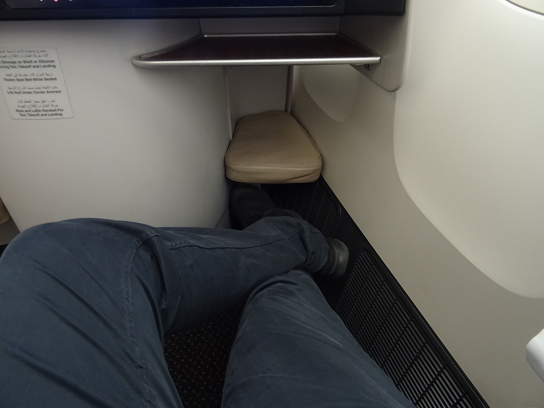Auf diesem Flug kam eine B777-300 mit Lie-Flat Sitzen zum Einsatz, welche zwei Ablagemöglichkeiten zur Verfügung stellte. Die eine befand sich links bzw. rechts vom Sitz und die andere befand sich unter dem Bildschirm. Reisende mit vielen Gadgets und sonstigen Produkten, die während des Fluges benötigt werden, stoßen womöglich an ihre Grenzen. Mir persönlich fehlten vor allem kleinere Ablagemöglichkeiten, in denen man z.B sein Mobilgerät ablegen konnte. Während ich geschlafen habe, hätte ich meine Hosentaschen gerne entleert, um zu vermeiden, dass etwas in die Ritzen vom Sitz fällt.