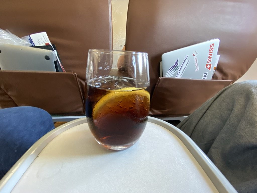 Noch vor dem Start wurde uns ein Begrüßungsgetränk und ein kaltes Tuch angeboten. Damit fühlen wir uns im Flugzeug immer richtig „angekommen“. Direkt nachdem die Anschnallzeichen erloschen waren, wurden weitere Getränke gereicht und mit dem Service begonnen. Es gab drei Gerichte zur Auswahl.