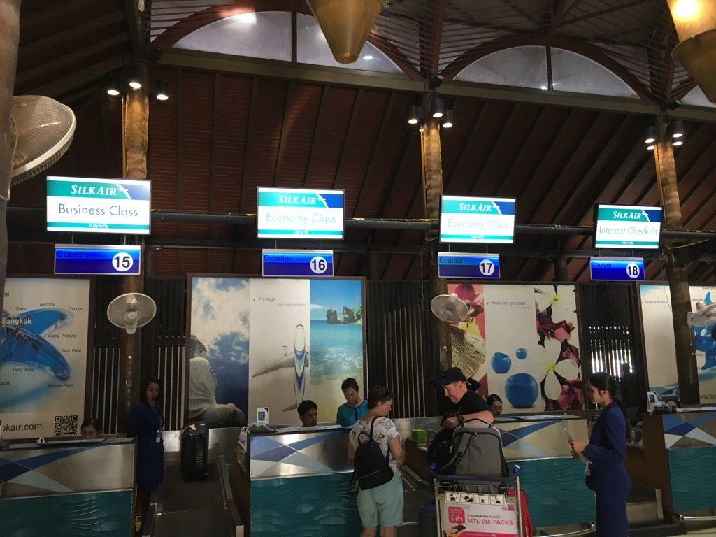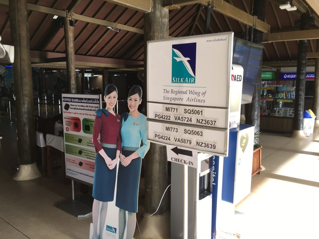 Der Flughafen von Koh Samui ist deutlich anders, als die meisten Flughäfen, welche man kennt. Der gesamte Flughafen ist quasi ein Open Air Bereich, mit überdachten Bereichen als Gate. Auch der Check-In Schalter von SilkAir befindet sich nur unter einer Überdachung, welche zu allen Seiten hin offen ist.