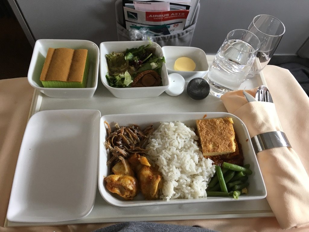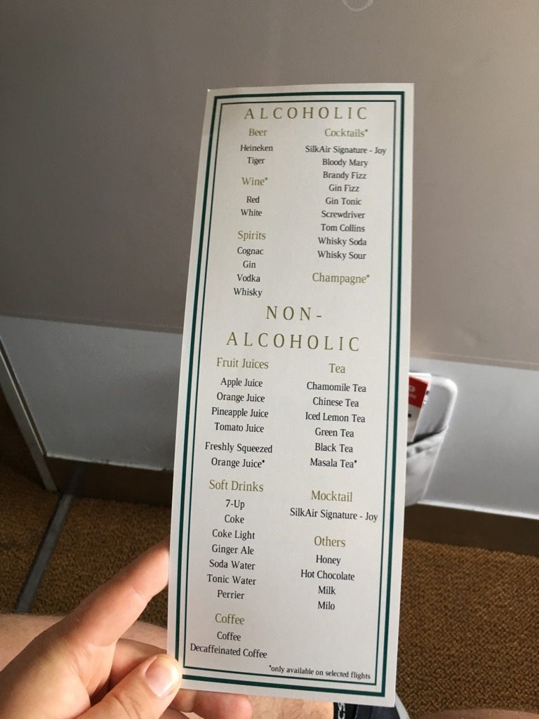 Was mich bei SilkAir ein wenig überrascht hat war, dass man auch hier wieder nur Wasser und Wein zum Essen angeboten hat. Wir haben uns andere Getränke aus der Karte bestellt, welche erst gebracht wurden, als wir schon fast fertig mit dem Essen waren.