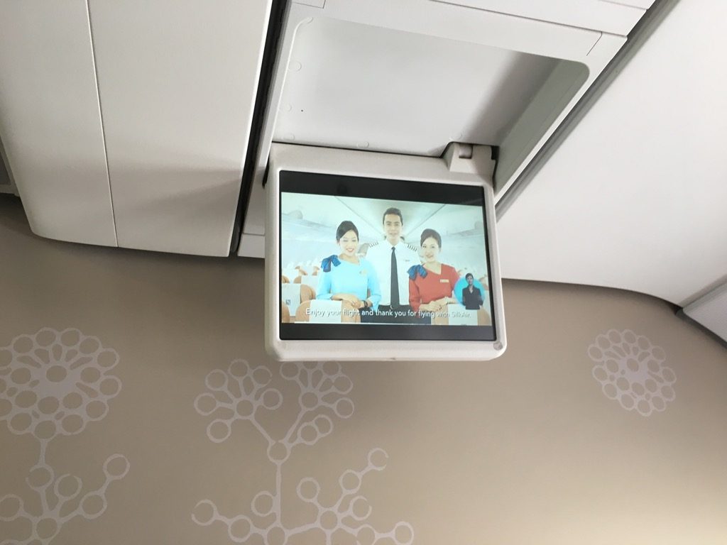 Der SilkAir Airbus A319 verfügt zwar über Monitore an der Decke, welche genutzt werden um die Sicherheitsanweisung zu zeigen, allerdings verfügen die Sitze selbst über keinen Audioausgang oder gar einen eigenen Monitor um Filme oder Serien zu schauen.