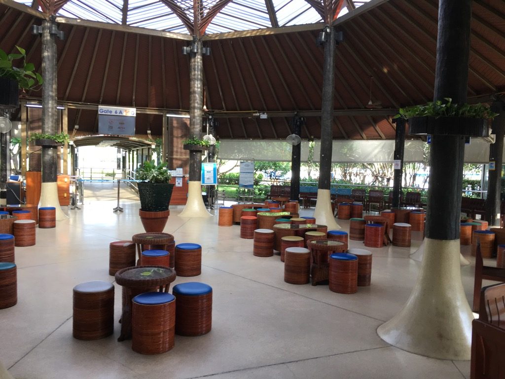 Die Gates in Koh Samui sind selbst schon fast wie eine Lounge gestaltet. Dabei gibt es neben schön gestalteten Sitzgruppen auch einen kleinen Counter, an welchem sich auch SilkAir Economy Class Passagiere kostenlose Getränke und Snacks holen können.