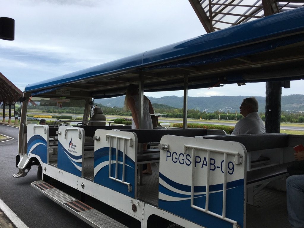 Zu Beginn des Boardings wurden Business Class Passagiere und Familien mit Kindern aufgerufen, welche mit dem ersten Bus zum Flugzeug gefahren werden sollten. Besonders „Familien mit Kindern“ bedeutet auf Koh Samui, dass sich über die Hälfte der Passagiere angesprochen fühlten.
