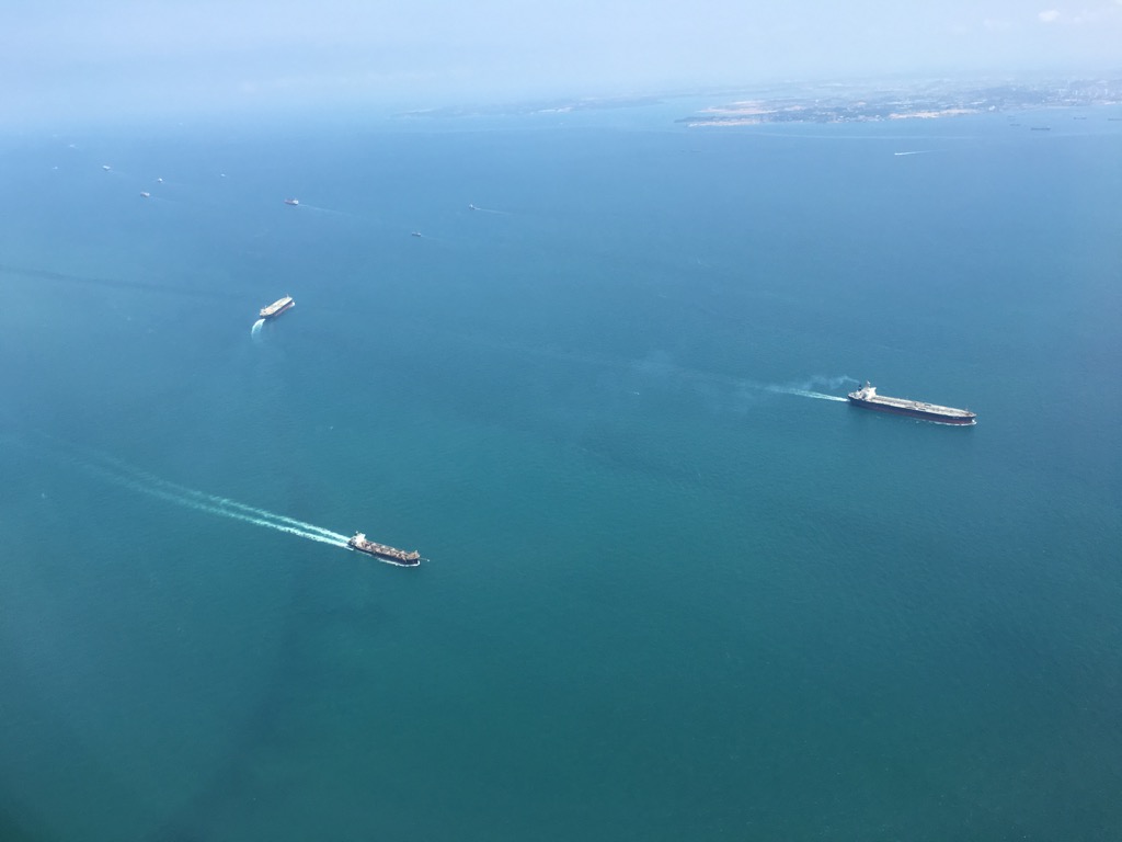 Etwa 30 Minuten vor der geplanten Ankunftszeit hatten wir eigentlich schon Singapur erreicht, leider mussten wir noch ein paar Schleifen fliegen, so dass wir „nur“ pünktlich gelandet sind.