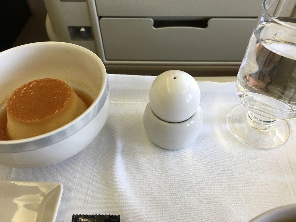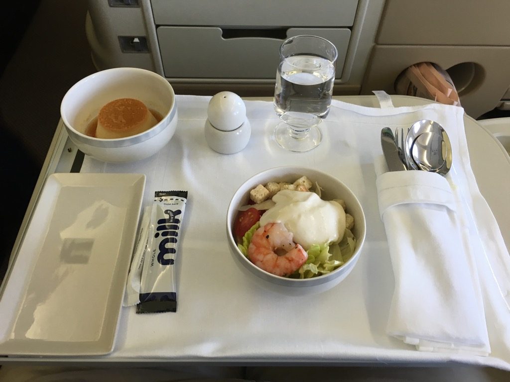 Die Crew auf diesem Flug hat sich dazu entschieden, erst die Vorspeise und anschließend die warmen Hauptspeisen zu servieren, statt alles auf einmal. Ich persönlich finde dies auch besser.