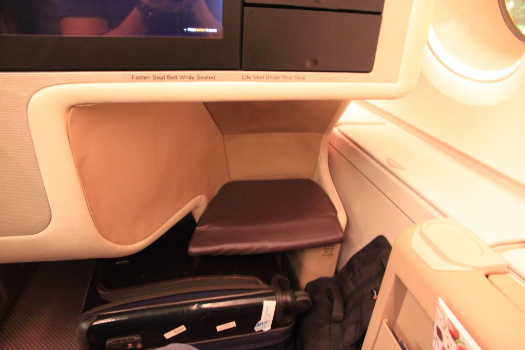 Sehr positiv sind die vielen Ablagefächer an dem Singapore Airlines Business Class Sitz. Neben einigen Staufächern neben dem Fernseher für kleinere Gegenstände, verfügen die Fensterplätze auch über große Staufächer unter den Fenstern.
