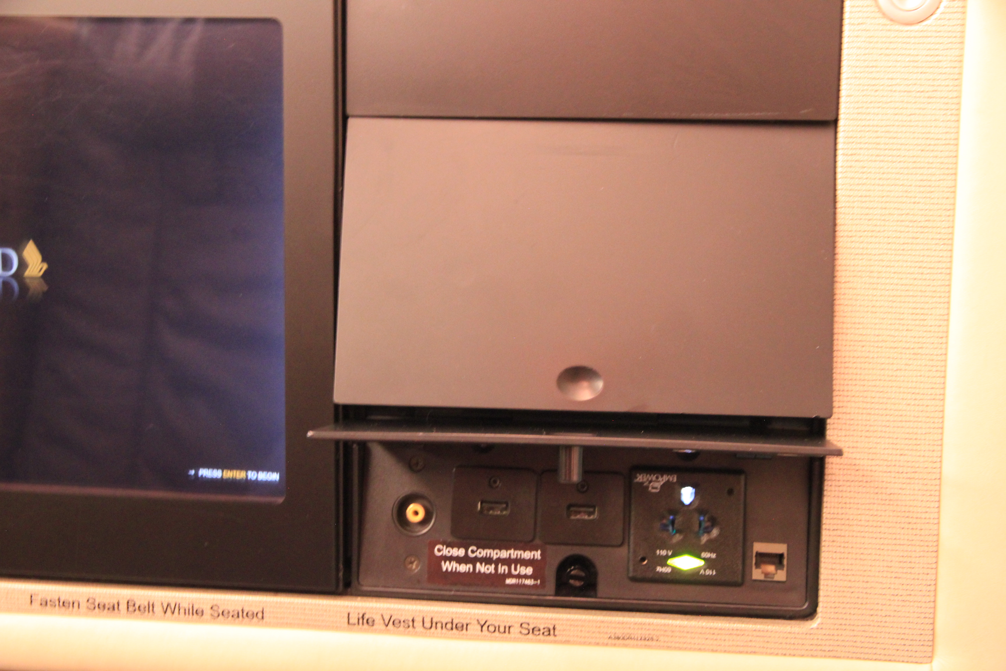 Sehr positiv sind die vielen Ablagefächer an dem Singapore Airlines Business Class Sitz. Neben einigen Staufächern neben dem Fernseher für kleinere Gegenstände, verfügen die Fensterplätze auch über große Staufächer unter den Fenstern.