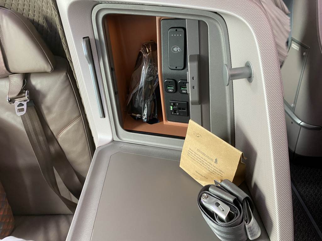 Wenn man nachfragt bekommt man Sandalen und schlafmaske.Resierer ist meist nur einer da.War frueher anderDa lobe ich Etihad da bekam ich 4 Amenitys hin und zurueck.Das schlimmste ist das schlechte Essen in Buissness bei SIA. War frueher alles besser.