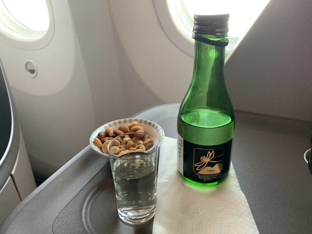 Als Drink direkt nach dem Start ließ ich mir einen Sake servieren. Die Frage ob ich ihn warm oder kalt trinken möchte, überzeugte mich schon. Ich entschied mich für kalt und bekamt zu meiner Überraschung ein komplettes Fläschen an meinen Tisch gebracht.