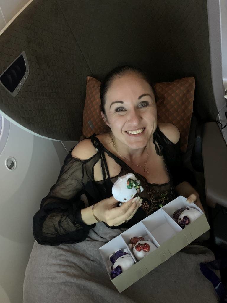 Unterbrochen habe ich den Film dann lediglich, um für meine Frau das „Singapore Girls Hello Kitty“-Set aus dem Bordverkauf zu bestellen. Natürlich hatte ich mich selbst auch nicht vergessen und mir ein kleines Boeing 787-10-Modell ausgesucht. Beide Artikel waren zu meiner Freude auch wirklich an Bord verfügbar.