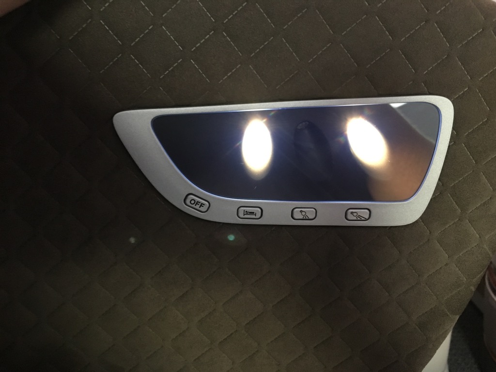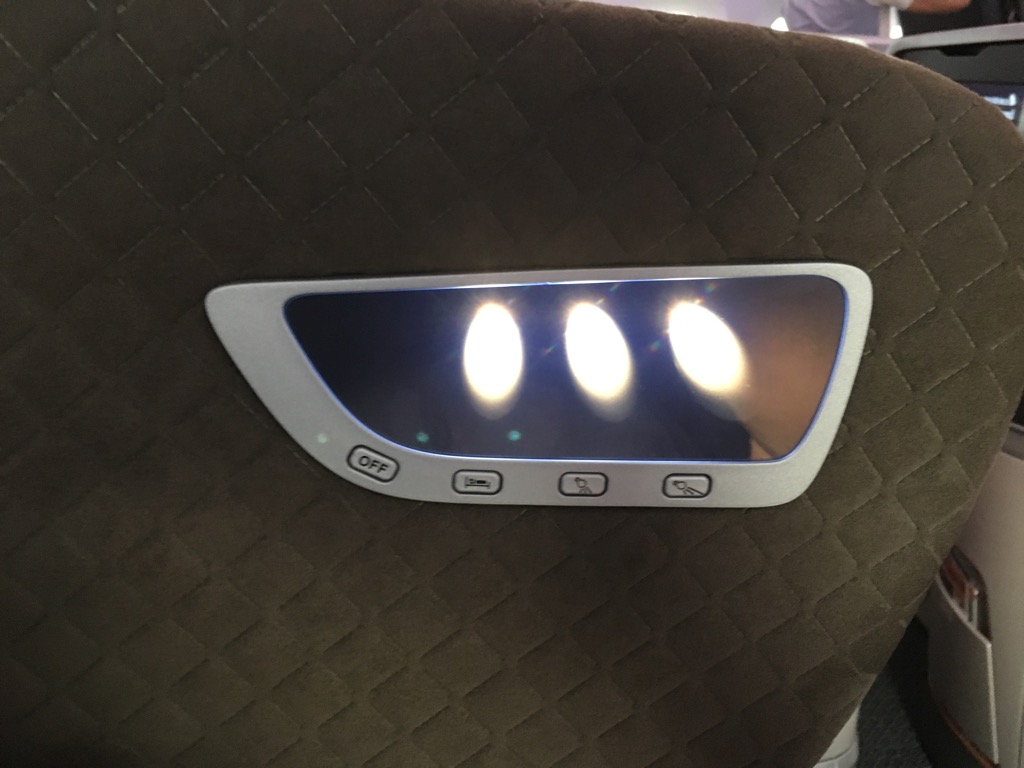 Generell wirkte der Sitz auf mich sehr durchdacht und hatte eine ganze Reiher schöner Details, wie z.B. die Knöpfe zur Sitzverstellung, oder auch die Leseleuchte, welche sich individuell einstellen lässt. Auch das „Do not disturb“ Schild war eine nette Idee.