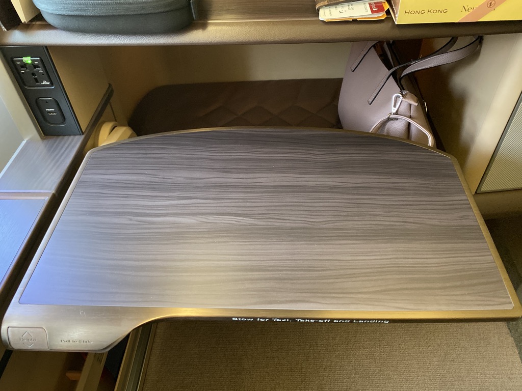 Jeder Sitz verfügte über eine Steckdose und mehrere USB Anschlüsse, an denen man seine elektrischen Geräte laden konnte. Zudem erhält jeder First Class Passagier kostenfreies Internet, was während dem Flug sehr gut funktioniert hat.