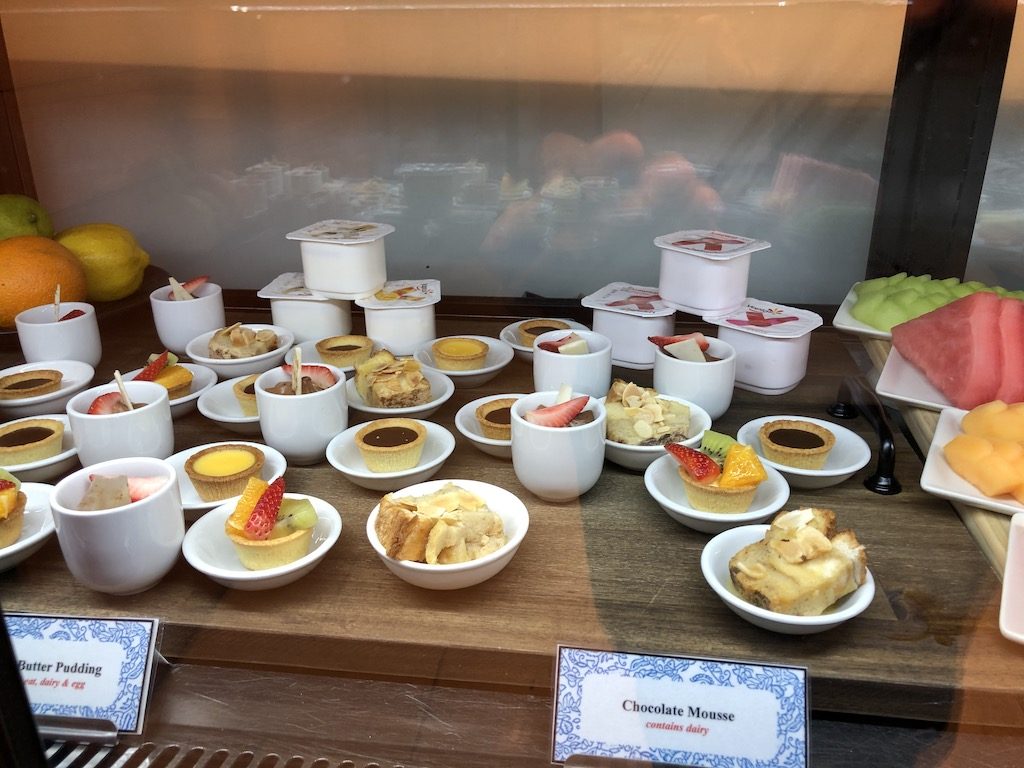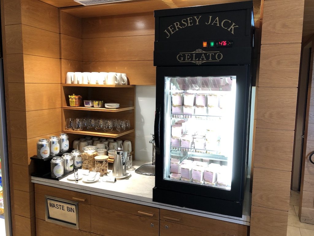 Zum Abschluss gab es verschiedene Desserts und sogar einen Gefrierschrank mit Eis! Dazu passte dann doch noch ein Flat White, den mir eine Mitarbeiterin an der Kaffeestation liebevoll mit zubereitet hat.