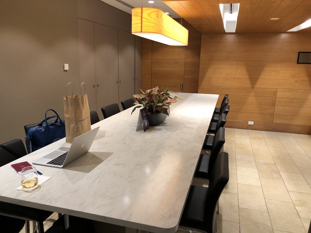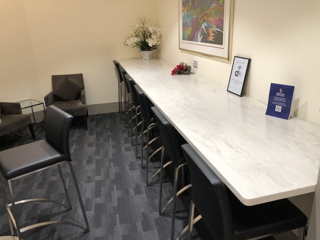 Nach einer warmen Begrüßung wurde die Zugangsberechtigung überprüft und die Lounge kurz erklärt. Diese ist nicht sonderlich gross, aber für die Business-Class Gäste und Statuskunden eines Fluges wohl ausreichend. Es gibt verschiedene Bereiche mit unterschiedlichen Sitzmöglichkeiten wie Barhocker, Sesseln und Stühlen mit Tischen.