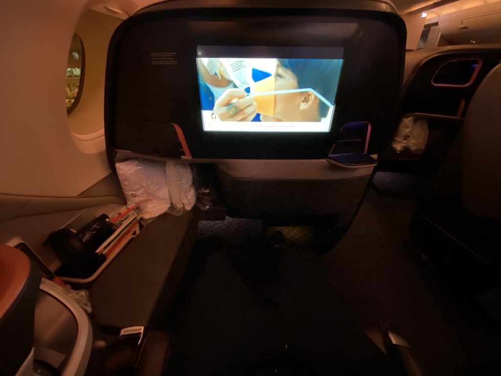 Mein absolutes Highlight bei diesem Sitz war das neue Lichtkonzept sowie der mit 18 Zoll deutlich größere Bildschirm im Vordersitz. Auch ließ sich dies wieder mit dem Krisflyer-Account verbinden, wodurch ich auf meine Favoriten aus dem Flug von Delhi nach Singapur zugreifen konnte. Auch das System funktionierte viel flüssiger als noch auf dem Flug nach Delhi, dies ist aber der Zeit geschuldet.