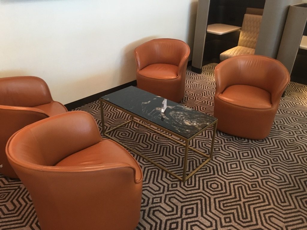 Weiter hinten befand sich die eigentliche Lounge. Diese ist offen zum Terminal und daher sehr hell. Im rechten Teil der Lounge befindet sich ein großer Dining Bereich mit vielen Tischen und Stühlen.