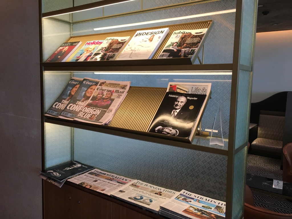 Neben einigen internationalen Magazinen und Zeitungen, gab es auch noch ein Display mit Produkten aus dem Singapore Airlines Inflight Shopping Angebot.