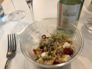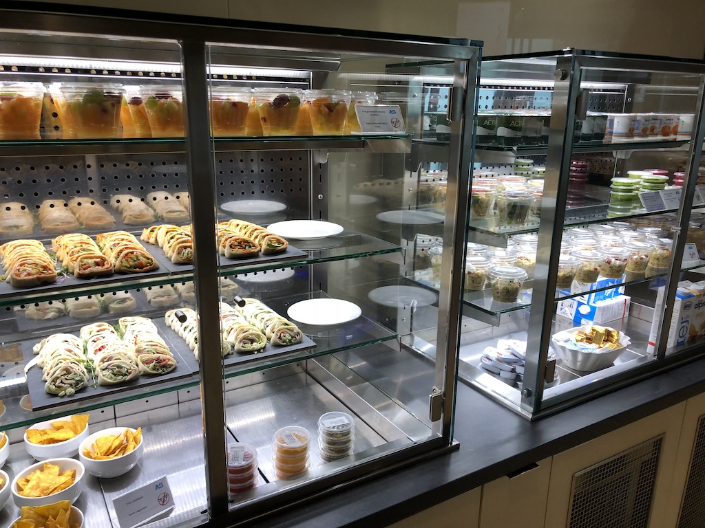 Das Essensangebot hat überrascht, was vielleicht auch an unseren niedrigen Erwartungen lag. Neben den üblichen Snacks werden auch einige warme Optionen angeboten. Es gab Paninis, Suppe und Hähnchen mit Gnocchi.