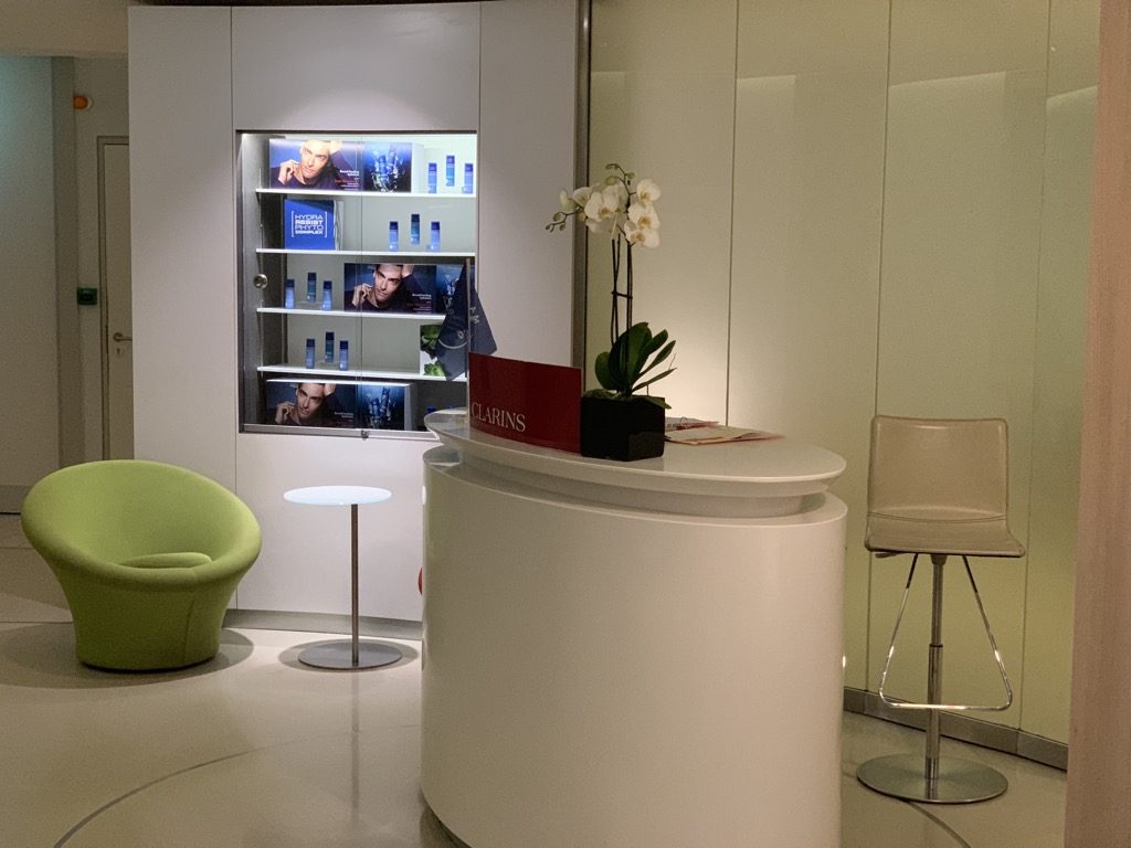 Ebenfalls in der zweiten Etage befand sich das Clarins Spa, in welchem man verschiedene Behandlungen buchen konnte. Diese waren allerdings kostenpflichtig. Die Duschen in der SkyTeam Lounge konnte man dagegen kostenlos nutzen.