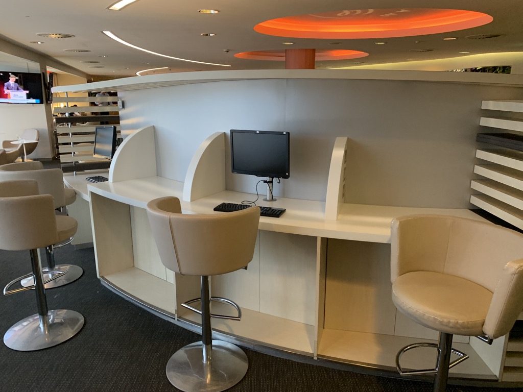 In der Lounge gibt es eine Reihe von verschiedenen Sesseln in kleinen Gruppen und bequeme Stühle an verschiedenen Tischen. Allerdings hat man diese recht eng gestellt, sodass man besonders bei einem hohen Füllgrad der Lounge sehr nah an seinem Nachbarn sitzt.