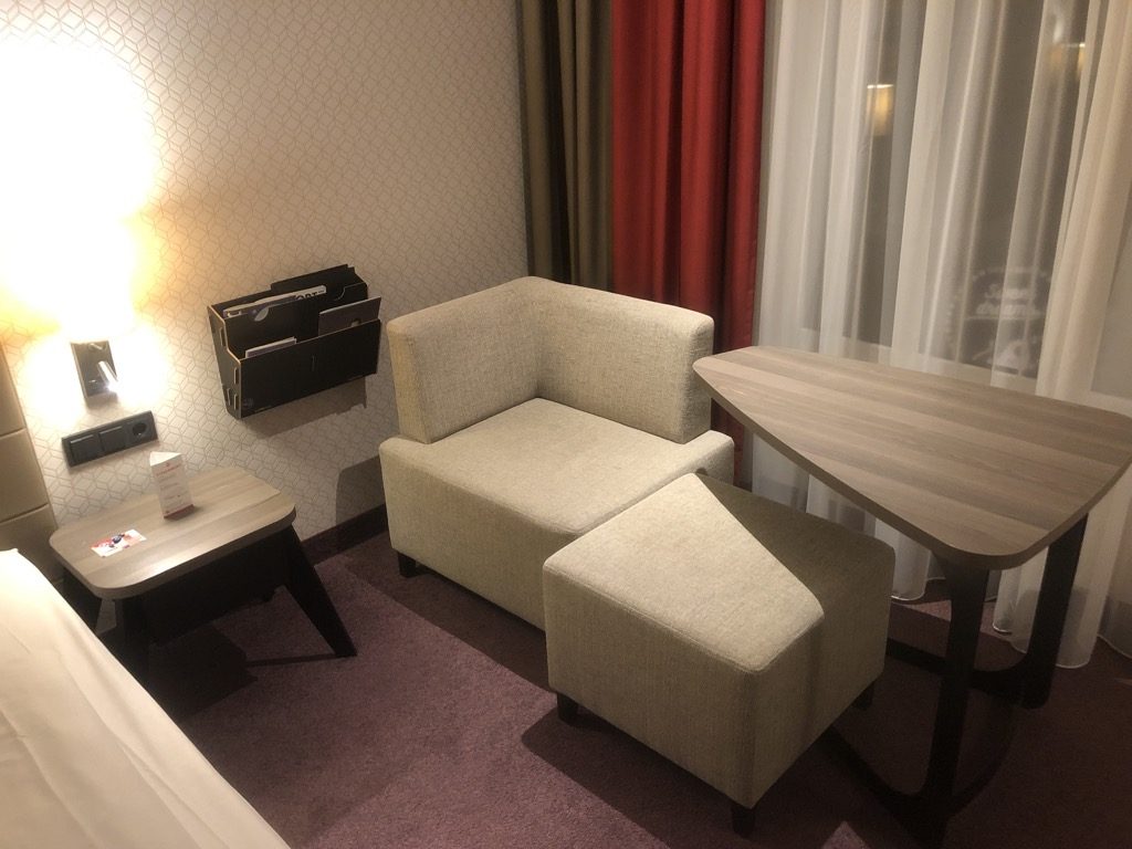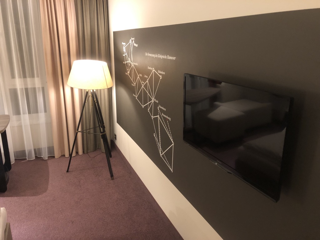 Das Steigenberger Parkhotel Braunschweig ist erst einige Jahre jung. Dies machte sich jedoch gar nicht so massiv im Zimmer bemerkbar, wie zunächst vermutet. Dieses vermittelte eher einen „jugendlichen“ Eindruck. Besonders der sehr kleine Fernseher ist eigentlich ein No-Go für ein ansonsten modernes Hotel. Weiterhin wurden übliche Amenities wie Telefon und Wasserkocher angeboten.