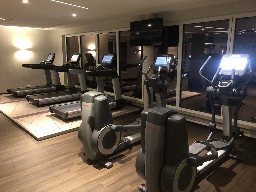Im obersten Stockwerk bietet das Hotel einen gut ausgestatteten Fitnessbereich mit Cardio- und Krafttrainingsgeräten an.