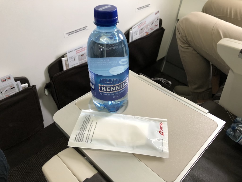Noch am Boden wurden eine Flasche Wasser samt Erfrischungstuch verteilt, danach wurde das Flugzeug aus der Parkposition geschoben. Das Sicherheitsvideo lief parallel dazu auf einem kleinen Display an der Decke. Dort waren im Flugverlauf auch Informationen zu der Reise und die Position auf der Landkarte zu sehen.