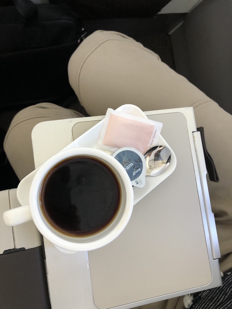 Ohne lange warten zu müssen wurden die Tabletts aller Gäste die gegessen hatten abgeräumt und Kaffee serviert. Es gab zwar keine Spezialitäten wie Espresso oder Cappuccino, auf dem Flugzeug hätte ich das aber auch nicht erwartet. Vor der Landung in Zürich wurden sogar ein weiteres Mal Getränke angeboten!