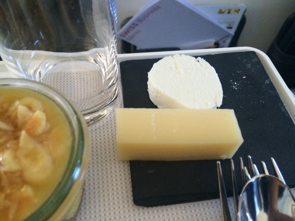 Das Essen wurde auf diesem Flug, zusammen mit Vorspeise, Hauptspeise, Käse und Dessert auf einem Tablett zusammen serviert. Dazu wurde ein Brotkorb angeboten.