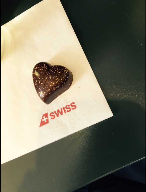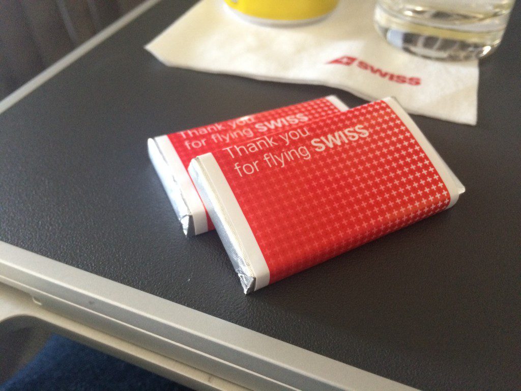 Zum Abschluss des Essens wurde noch Pralinen von Lindt gereicht, um kurz darauf auch noch die traditionellen Swiss Schokoladen zu verteilen.
