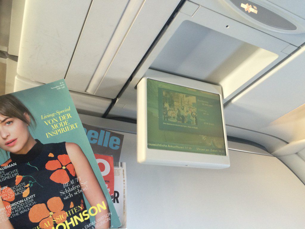 Die letzten zwei Stunden des Fluges habe ich mit einem Film auf meinem iPad verbracht. Swiss selbst bietet leider kein Entertainment System im Airbus A320, außer Deckenmonitore auf welchen neben Werbung und einer Karte auch noch Comics gezeigt wurden.