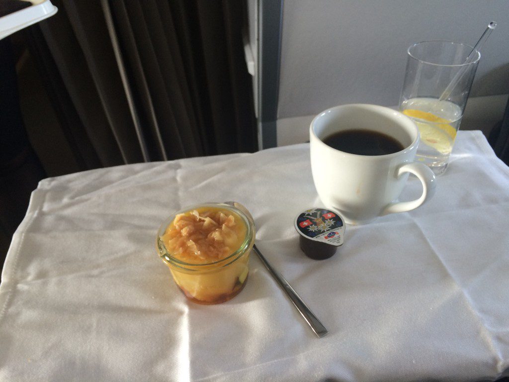Zum Dessert wurde mir ein Kaffee, sowie ein Digestif angeboten. Ich blieb nur beim Kaffee. Allerdings ist mir sehr positiv aufgefallen, dass die Flugbegleiter sehr bemüht waren, darauf zu achten wie schnell die einzelnen Gäste essen. So wurde mein Tablett abgeräumt und ein Kaffee serviert, während der Passagier hinter mir noch beim dritten Glas Wein und der Hauptspeise war.