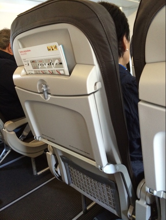 Die Sitze sind die selben, welche man auch in den Kurzstreckenflugzeugen der Lufthansa findet. Durch ihr sehr schlankes Design und der nach oben verlegten Literaturtasche, hat man als Passagier zwar eine recht gute Beinfreiheit, allerdings sind die Sitze auch fast nicht gepolstert.