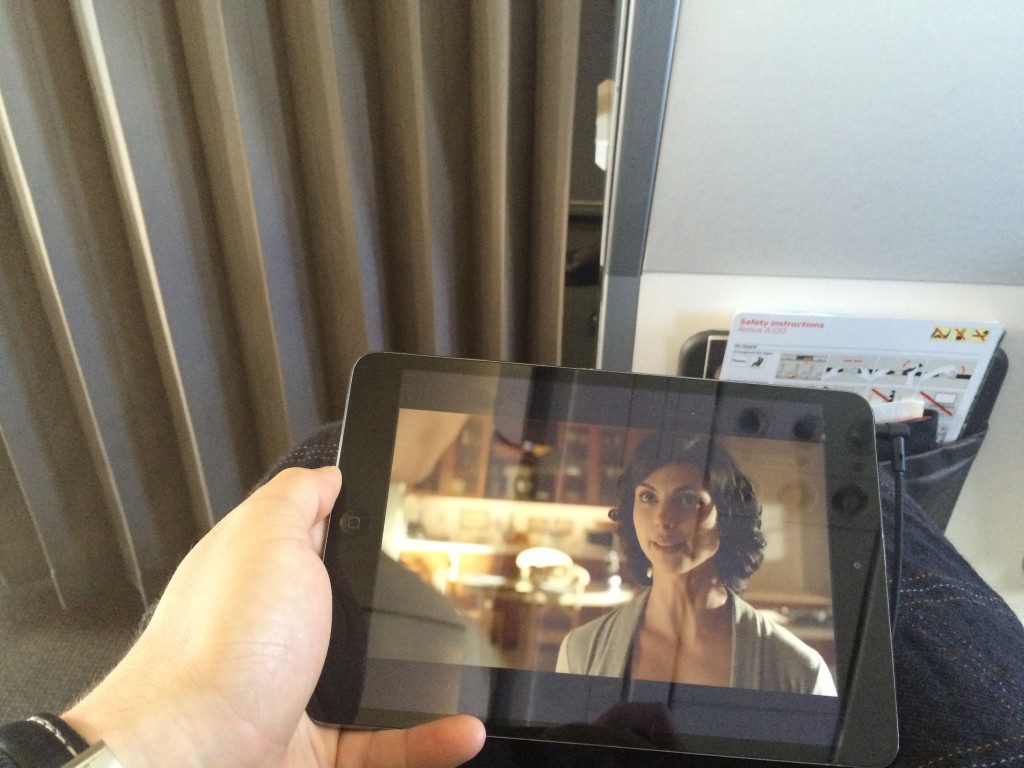 In Reihe 1 hat man leider auch nicht besonders viel Beinfreiheit. Auf den Gangplätze kann man zwar wie ich seine Beine frech nach vorne strecken, allerdings streckt man sie so auch schon fast mitten in die Galley. Nicht wirklich optimal.