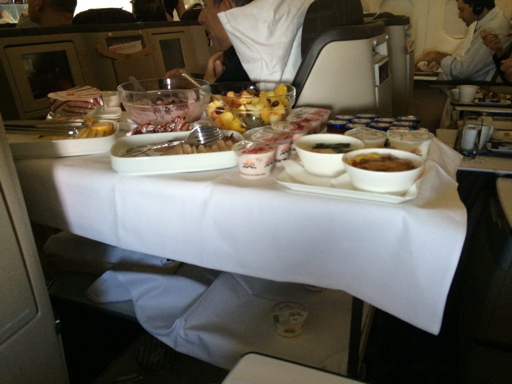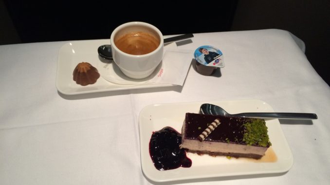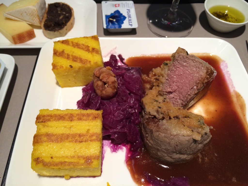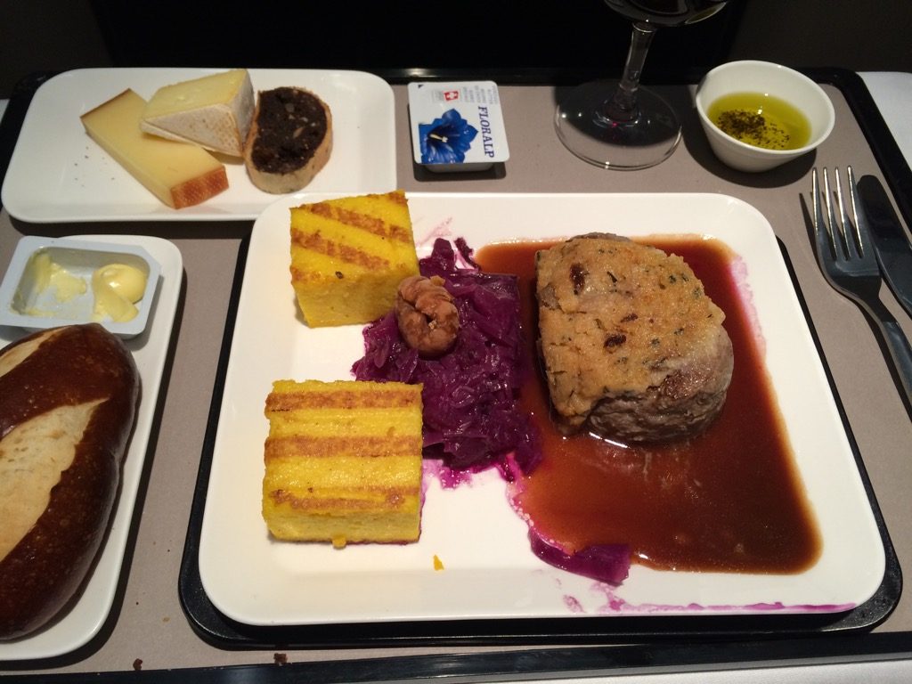 Das Rinderfilet als Hauptgang hat mich begeistert. Nicht nur, dass es schön angerichtet war, auch ein Medium gegartes Rinderfilet bekommt man im Flugzeug nicht alle Tage, schon gar nicht in der Business Class.