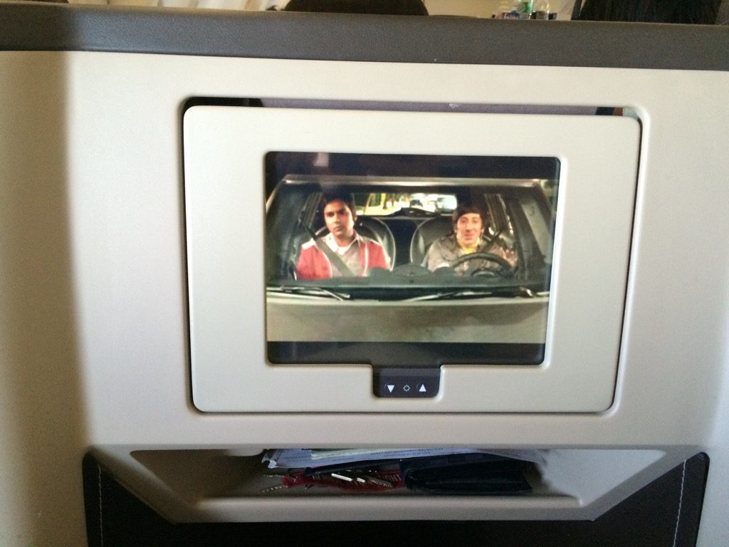 Das IFE der Swiss bietet eine gute Auswahl an Filmen, Serien, Musik und Spielen. Die Auswahl ist allerdings nicht mit top Systemen wie ICE von Emirates oder KrisWorld von Singapore Airlines vergleichbar. Zugegebener Maßen ist auch der Bildschirm eher klein für eine Business Class. Ich selbst nutze das IFE recht wenig auf Flügen und habe lediglich ein Folge „The Big Bang Theory“ geschaut, sowie die Moving Map betrachtet.