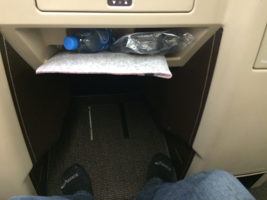 Eine Sache, welche mich immer begeistert sind die vielen Ablagemöglichkeiten bei diesem Sitz. Neben den zwei großen Ablagen links und rechts neben der Armlehne, gibt es auch noch zwei Literaturtaschen, ein Staufach unter dem Fernseher, sowie ein Schuhfach am Boden. So lassen sich alle Dinge, welche man während des Fluges benötigt problemlos verstauen.