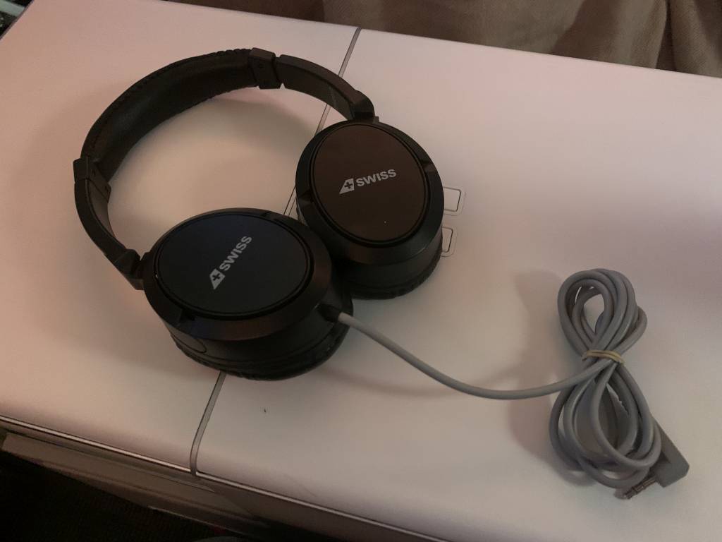 Auf unserem Sitz, der sich in ein bequemes flaches Bett verwandeln ließ, wartete schon ein Kissen und eine Decke für den langen Flug. Beides wirkte eher dünn und die Decke hatte dann auch noch einen gewissen Öko-Touch. Am Platz hing außerdem der von Swiss gewohnte Kleiderbügel mit Sitznummer und es stand eine Flasche Wasser bereit.