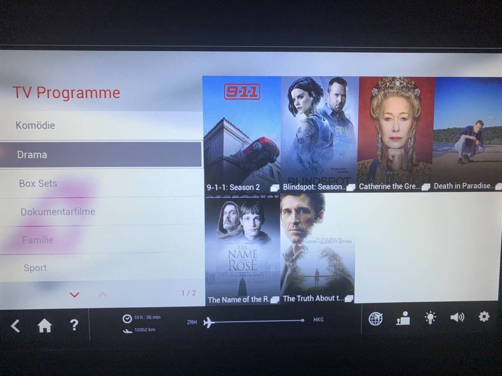 Nachdem das Gläschen Portwein geleert war, versuchte ich bei einem Film aus dem Inflight-Entertainment-System etwas zu schlafen. Das gelang mir auf diesem Flug leider nur sehr bedingt.