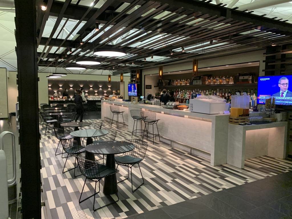 Mit unseren mobilen Bordkarten kamen wir diesmal in Hongkong auch ohne Probleme durch die Sicherheitskontrolle. Da wir noch einige Zeit bis zum Abflug hatten, betrieben wir etwas Lounge-Hopping. Also eigentlich mehr ich, denn meine Frau setzte ich in der Singapore Airlines Lounge ab, während ich mir für eine Review der American Express Lounge den Weg durch das halbe Terminal bahnte. Nach meiner Rückkehr in der Singapore Airlines Lounge gönnte ich mir noch ein paar Singapore Sling und Champagner. Da die Lounge der Singapurer bei unserem Besuch über keine funktionierenden Duschen verfügte, mussten wir uns noch etwas anderes einfallen lassen. Daher statteten wir auch noch der Hongkong Airlines Lounge einen Besuch ab, die eigentlich sogar für Swiss Passagiere vorgesehen ist.